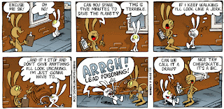 I just got back from Guatemala (photos coming soon) where I was able to get a few strips drawn in addition to a bit of sightseeing and mudslide avoiding. Since Central America is mostly hot and humid for most of the year, there are always a lot of insects which I always find both fascinating (since they are generally speaking completely mad looking and ten times the size of insects in California, and bothersome (since they tend to enjoy the exotic Hemoglobin libations that can be found within my veins. Thus, they tend to crop up in my rabbit strips a lot. This one was done in Brazil last year.